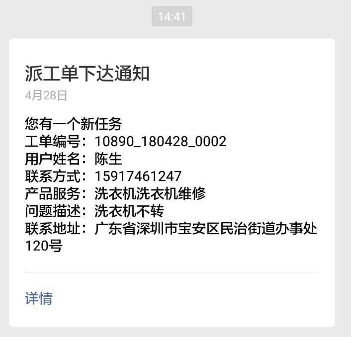 6》工單處理流程:師傅只能用微信接單。流程:下單通知單擊詳情→接單(搶單)→開工→工單處理(耗材管理,費(fèi)用登記,文字描述,拍照保存上傳)→完工→打分/評(píng)價(jià)。