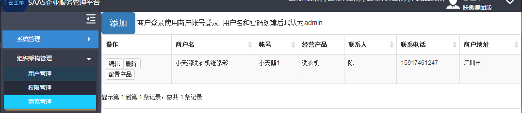 3》①:組織架構(gòu)管理:包括用戶管理,用戶權(quán)限管理和商家管理。