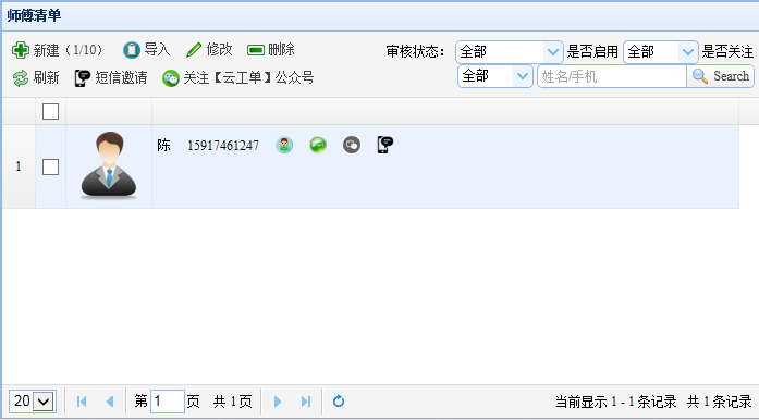 A:工單管理系統(tǒng)支持批量導入師傅信息表格功能。如圖:
