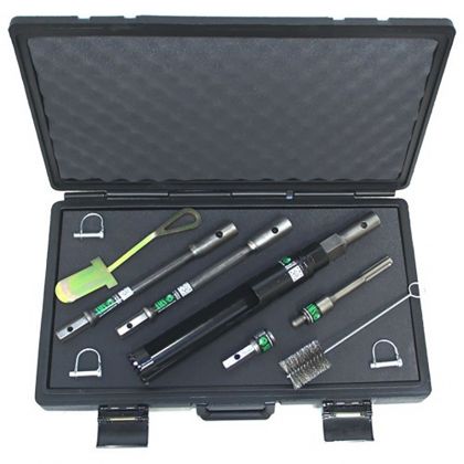 ? ? ? ?206.10凍土取樣套件主要是用于取凍土土芯。帶碳合金鋸齒的圓形土芯鉆頭便于切開(kāi)表層凍土并原位取得土芯樣品。圓形鉆頭內(nèi)徑約為2英寸(5.08厘米),一次可取長(zhǎng)度8英寸(20.32厘米)的土芯。套件采用快速連接頭連接,采樣深度可達(dá)3英尺(91.44厘米)。套件可以選配電鉆。