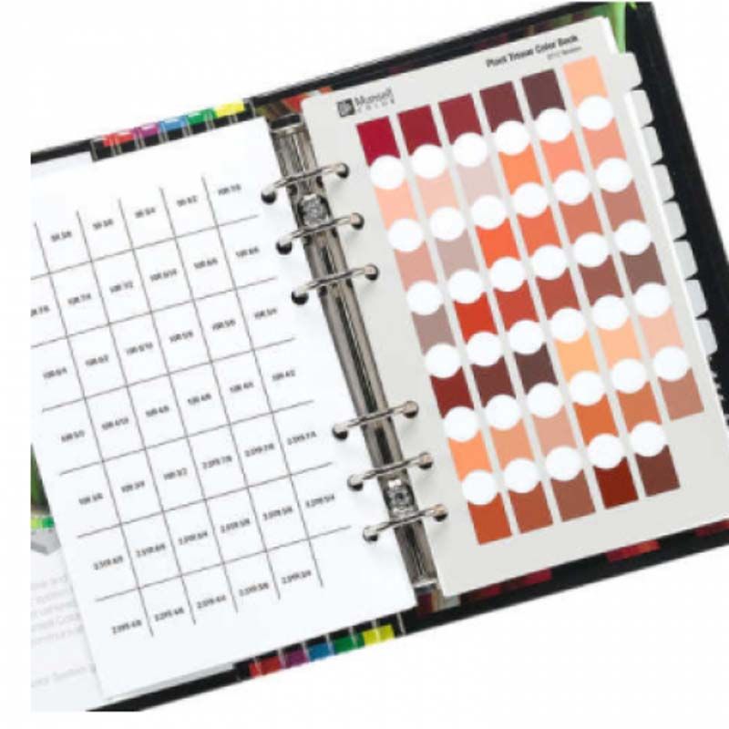 ? ? ? ?Munsell植物組織比色卡是一套植物學(xué)家的色彩指南。共分為十七個(gè)活頁(yè)的色彩圖表,通常被用來(lái)測(cè)定和記錄植物組織的顏色。這個(gè)信息對(duì)科學(xué)家在工作中掌握植物的成長(zhǎng)速度,營(yíng)養(yǎng)的缺乏,植物的疾病以及其他植物的成長(zhǎng)過(guò)程起著重要的作用。
