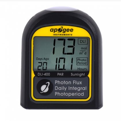 ? ? ? ?Apogee新的DLI-400測量儀設(shè)計用于測量400-700納米的光合有效輻射(PAR),是一種低成本選擇,只在陽光和一些寬帶光源下準(zhǔn)確。可以應(yīng)用測量后的修正系數(shù)來提高光源下的準(zhǔn)確性;除了測量PAR,DLI-400測量儀還可以計算每日光積分(DLI)和光周期,PPFD、DLI 和光周期數(shù)據(jù)可在屏幕上查看或通過 USB-C 電纜下載進(jìn)行分析,可直接放在水平面上也可安裝到三腳架、夾具或木樁上。