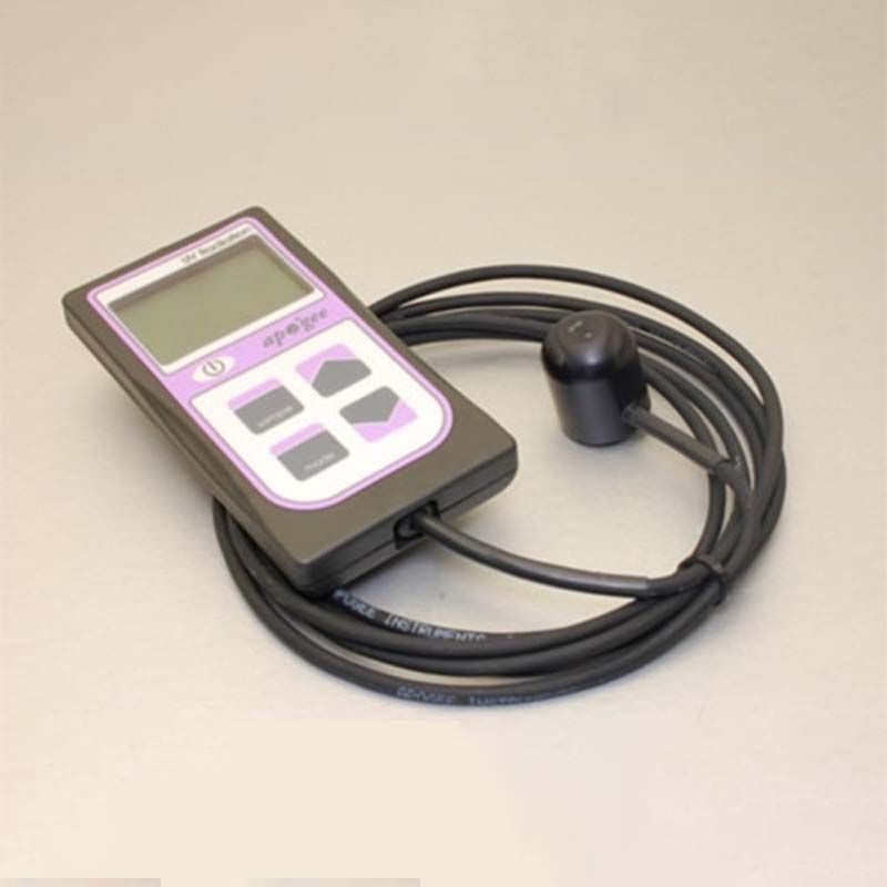 ? ? ? ?適度的紫外輻射對于種子萌發(fā)和植物生長都有著非常積極的影響,但是高強(qiáng)度的紫外輻射則會對植物產(chǎn)生有害甚至是致命的危害。MU系列手持式紫外輻射計(jì)可用于測量250nm~400nm紫外光強(qiáng)度,能夠?qū)μ柟狻晒鉄?、紫外線殺菌燈等各種光源中的UVA(315nm~400nm)和UVB(280nm~315nm)紫外線強(qiáng)度進(jìn)行測量。MU系列手持式紫外輻射計(jì)配有液晶顯示屏,能夠?qū)崟r顯示測量的數(shù)據(jù)。面板按鍵能夠讓您快速對輻射計(jì)進(jìn)行操作。它提供了μmol/m2s和W/m2兩種數(shù)據(jù)單位,您可以根據(jù)自己的需要自行選擇。? ? ? ??