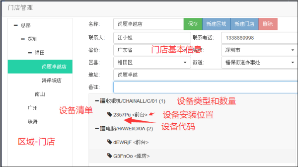 組織架構(gòu)樹、門店設(shè)備樹:門店設(shè)備清單和數(shù)量一面了然。