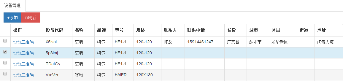 系統(tǒng)升級了設(shè)備資產(chǎn)管理:當用戶在每個設(shè)備上貼上二維碼,當客戶掃碼保修,系統(tǒng)會獲取到這個設(shè)備的參數(shù)的以及保修者的詳細地址;如圖: